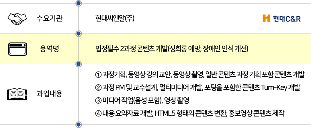 | 현대씨앤알 - 법정필수 2과정 콘텐츠 개발(성희롱 예방, 장애인 인식 개선) | |||||