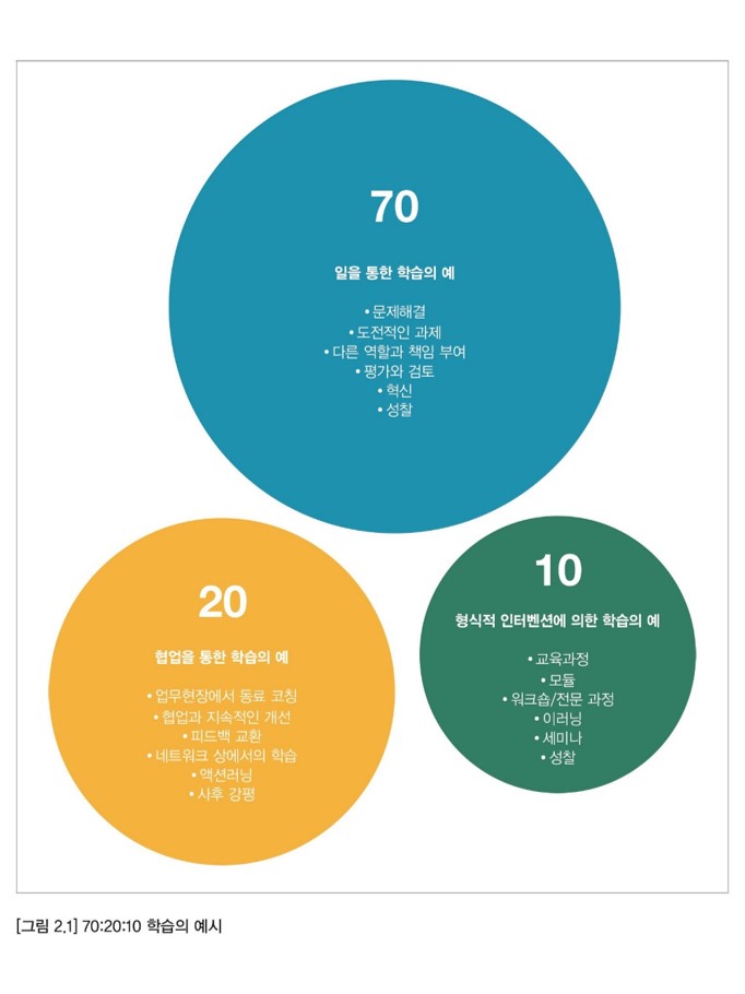 종종 현대 교육의 문제점을 지적하며 19세기 교실에서, 20세기 교사가, 21세기 학생들을 가르친다고 표현합니다. 우리의 인재육성 전략 및 성과 관리 방안도 19세기 강의실에서, 20세기 강사들이, 21세기 직원들을 육성해 온 건 아닌지 반성해 볼 필요가 있습니다. 그런 측면에서 이 책에서 제시하는 70:20:10 모델은 독자들과 함께 새로운 HRD 패러다임을 모색함으로써 조직의 전략적 파트너로서의 HRD로 거듭날 수 있는 기회를 제공해 드릴 것으로 기대합니다.